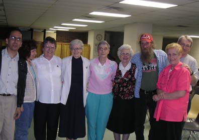 (raised money for the bus). Over 100 attended. 4/17/05  At Scholastica Monastary with some of the nuns, Ft. Smith, Arkansas, 4/17/05  Marshaltown, IA with some of the town residents 4/23/05  Student classes at University in Cedar Falls, IA